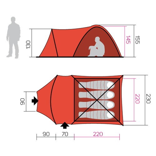 Hannah’s 4-person tent is great when you go camping or canoeing. 1 entry inner construction. Spacious living area. Comfortable sleeping areas.
